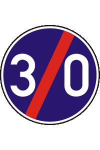 Виберіть дорожній знак, який позначає кінець ділянки дороги з найнижчим обмеженням швидкості: